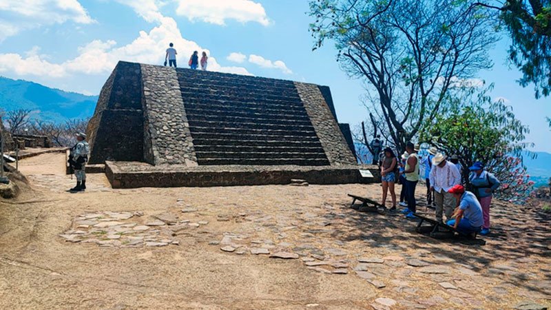 Los guardias nacionales realizan recorridos con el objeto de prevenir la comisión de delitos o faltas administrativas que pongan en riesgo la construcción y piezas arqueológicas de esta ciudad prehispánica, ubicada en el municipio de San Martín Centro, Estado de México.